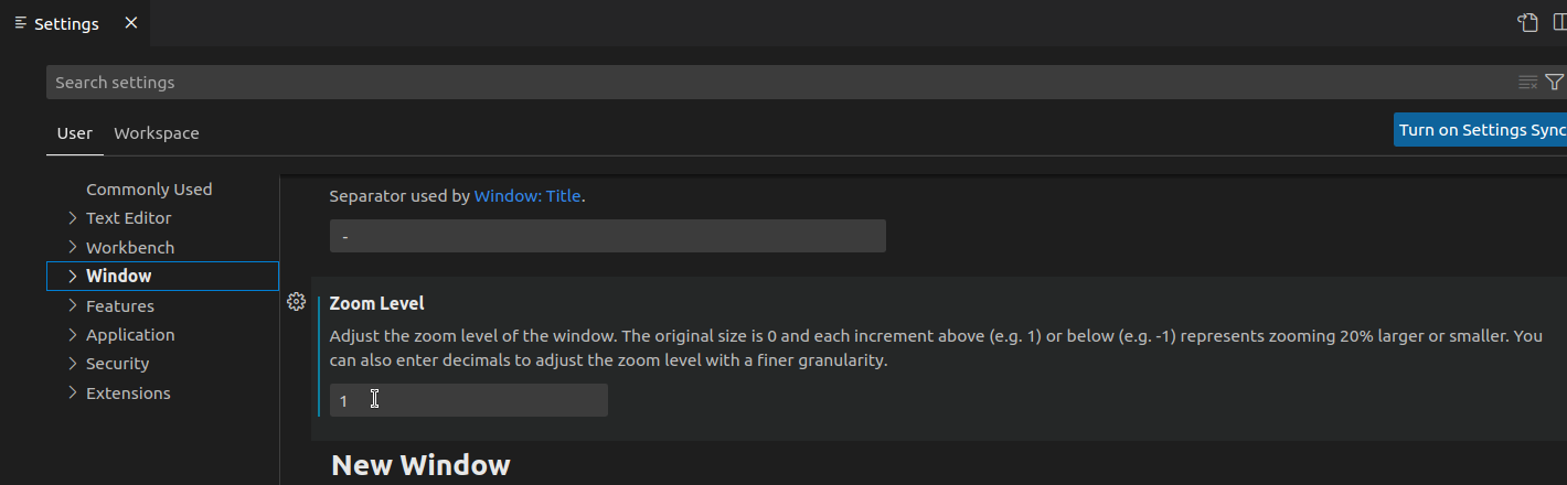 Text Editor-->Files2.Window-->ZoomLevel